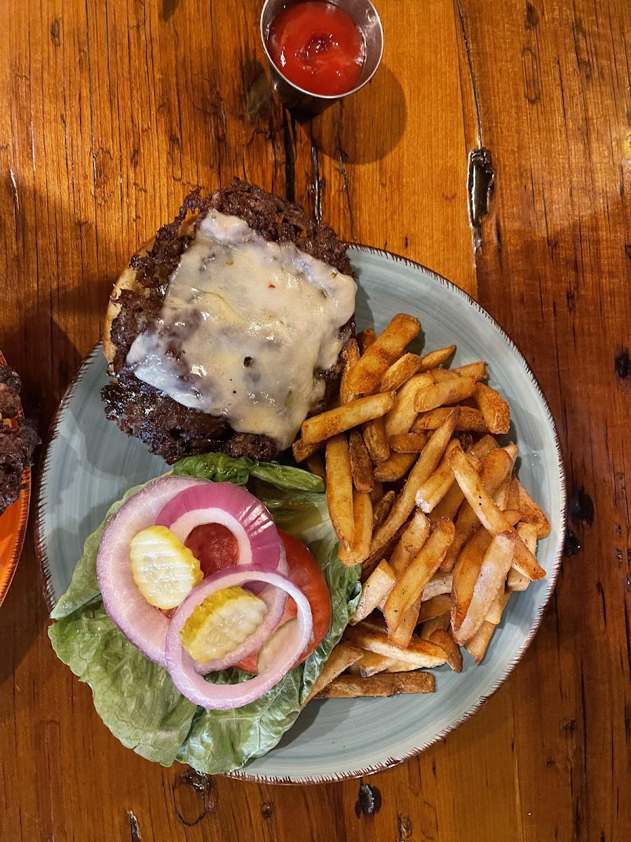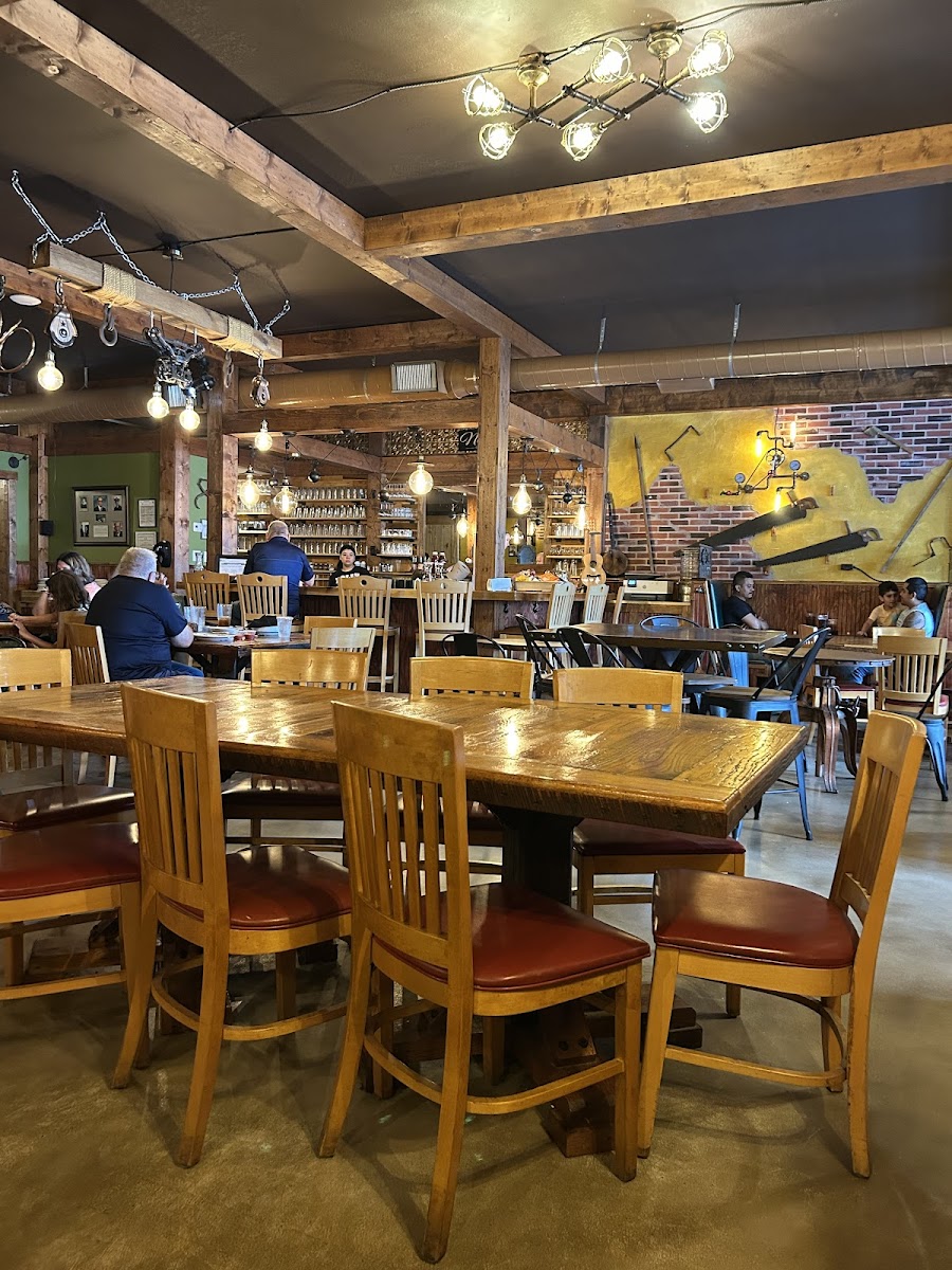 Fabulous gem of a restaurant in a small town. Food is amazing and very reasonably priced. Service is super friendly and attentive. Many great menu choices makes you want to come back for more. The decor and unusual lighting touches make for a great atmosphere. Lots of wood and lights that have been crafted, re-engineered for an amazing addition. Great burgers and pizza. Some evenings have live entertainment with a Nashville type feel. There is a small outdoor patio in front. A perfect small town restaurant.